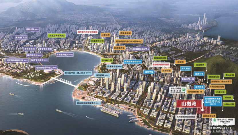 山樾湾与蛇口太子湾一山之隔,与前海妈湾一路即达,拥有顶级的城市配套和山海资源,汇聚地铁5号线、深圳15号线(在建,通港路站距项目约500米)等多条轨道交通,快速接驳南山科技园、宝安中心、福田CBD。