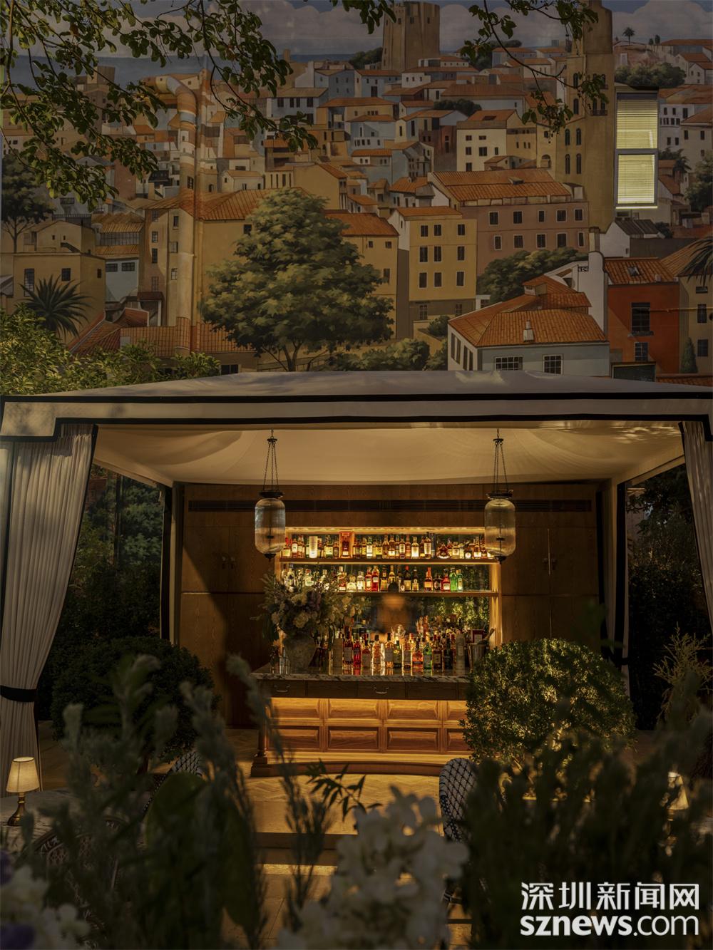 近千平的户外花园以低饱和自然色调铺陈,融合南法庭院布局、欧式花盆与明清石雕,在新旧交织中展现独特文化张力。花园侧翼设独立吧台,以唐人街意象叠加法式庄园氛围,为城市社交注入松弛调性。开阔区域可眺望沙河高尔夫球场,午后光影与傍晚微风自成景致。花园亦预留三处高尔夫打位,让来宾在私域空间中即可体验挥杆的仪式感与从容。