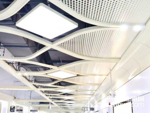 百旺站紧邻深圳荔枝世界种植基地,为给乘客提供沉浸式主题体验,天花设计采用柔美曲线,形成半裸装的空间效果。站厅建设中,项目团队创新应用蜂窝铝板与钢梁结合技术,打造荔枝树叶造型吊顶,叶片状装饰铝板错落分布于站厅顶部,为乘客营造出具有生命力的视觉感受。