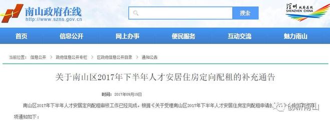 查询“南山区2017年下半年人才安居定向配租名录”可进入南山政府在线网页下载,点击“阅读原文”