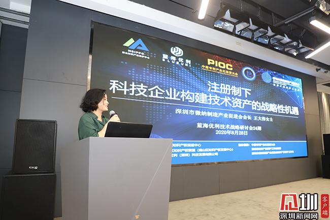 此次研讨会的主题是“注册制下,标准必要专利生产与技术资产战略”。蓝海优利(深圳)科技发展有限公司创始人李自军和深圳市微纳制造产业促进会会长王大伟分别发表主题演讲。