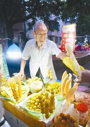 每天下午 4 点,79 岁的陈伯便会推着一车花花绿绿的水果出来,边削边聊,一直到晚上 11 点。那双布满青筋的手,一刀削着的,是生活。