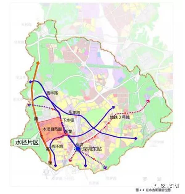 水径片区(以下简称“片区”)位于深圳市中部、布吉街道西南部,清平快速、西环路、吉华路与水径路围合区域,紧邻地铁五号线长龙站和下水径站。