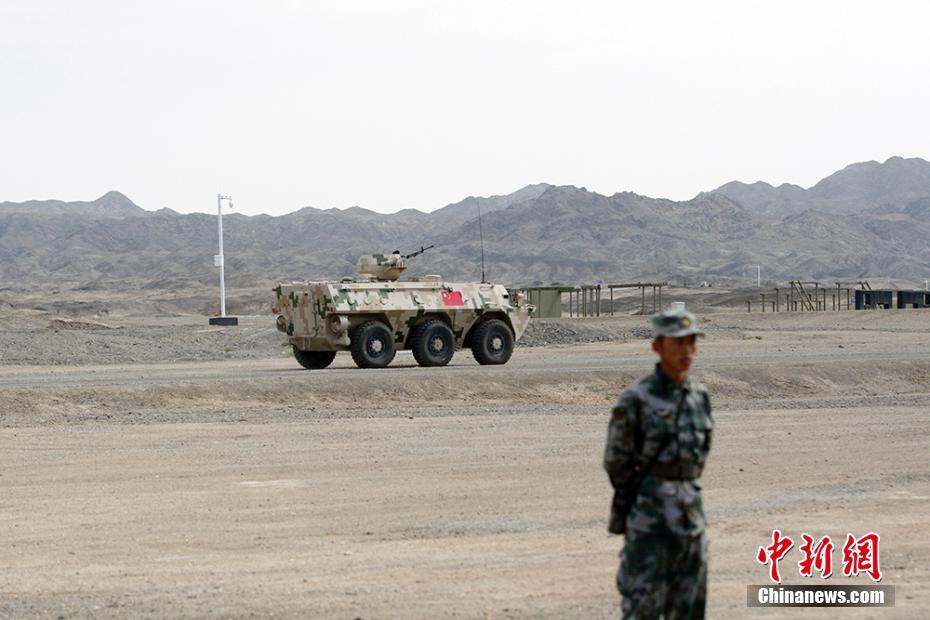 中国参赛队选手驾驶92A轮式装甲输送车冲出起点。王小军 摄